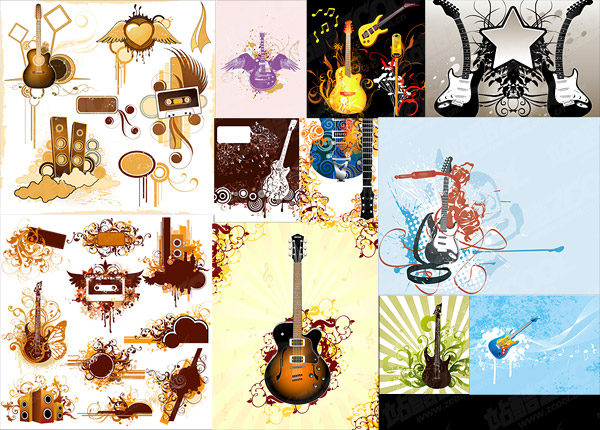 eps format, with jpg preview, keyword: vector music material, guitar, patterns, speakers, tapes, heart-shaped wings, the trend of elements, vector material