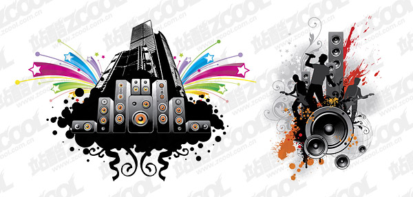 eps format, keyword: vector material, vector music material, speakers, speakers, singing, characters, silhouettes, colourful stars and the ink, high-rise buildings, the pattern