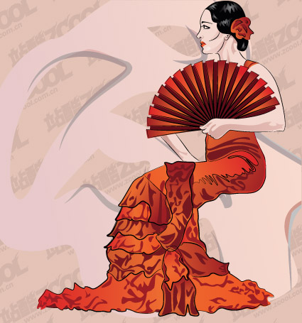 eps format, including jpg preview, keyword: Vector figure, female, woman, fan, vector material