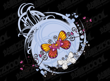eps format, including jpg preview, keyword: Vector lovely heart-shaped, butterflies, shapes, flowers, vector material