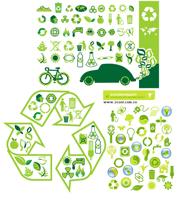eps format, including jpg preview, keyword: Vector icon, environmental protection, bicycles, cars, trash, light bulbs, sun, leaves, bottles, weather, butterflies, gossip, radio, saving, energy saving, material vector
